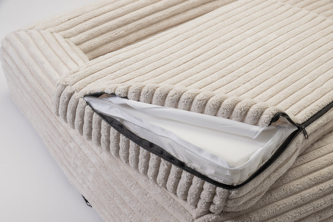 Der weiche Cordbezug, die wasserabweisende Innenbeschichtung und die unkomplizierte Pflege machen dieses Bett zu einem echten Wohlfühl-Highlight – für Hund und Mensch.